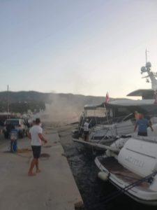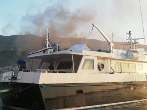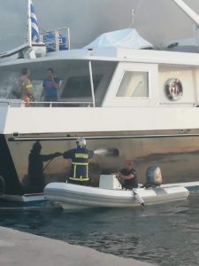 Στην περιοχή έσπευσαν στελέχη της οικείας Λιμενικής Αρχής καθώς και κλιμάκιο της Πυροσβεστικής Υπηρεσίας, με την συνδρομή του οποίου κατασβέστηκε η πυρκαγιά, η οποία είχε εκδηλωθεί στο μηχανοστάσιο.