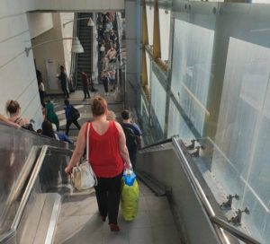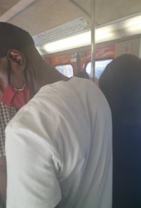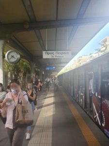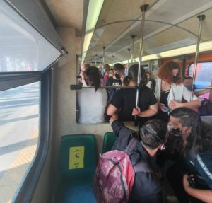 Στοιβαγμένοι ο ένας πάνω στον άλλο, οι περισσότεροι επιβάτες φορώντας  μάσκα ,προσπαθούν να μην έρθουν σε επαφή με τον διπλανό τους πράγμα σχεδόν αναπόφευκτο .Οι θέσεις των καθήμενων έχουν μειωθεί  για να κρατούνται οι αποστάσεις ωστόσο οι όρθιοι επιβάτες συνωστίζονται στους στενούς διαδρόμους των συρμών.