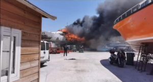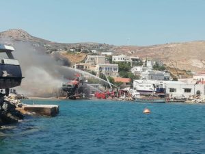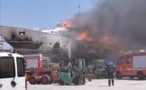 Σύμφωνα με πληροφορίες προηγήθηκε έκρηξη πριν οι φλόγες τυλίξουν τη θαλαμηγό που βρισκόταν εκεί για επισκευή.