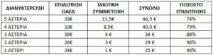 Για τα ακτοπλοϊκά εισιτήρια (μετ’ επιστροφής) το κόστος επιμερίζεται ως εξής: