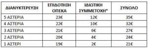 *Ανώτατο ποσό συμμετοχής δικαιούχου/διανυκτέρευση, χωρίς πρωϊνό
