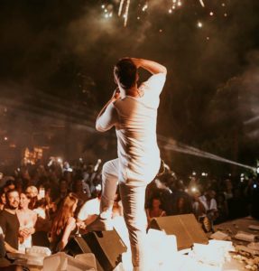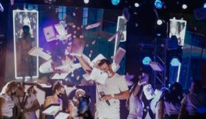 .Πέρα από τους χορευτές που πλαισιώνουν τον τραγουδιστή, οι περισσότεροι δε φορούν μάσκες…ενώ οι αποστάσεις είναι ανύπαρκτες….
