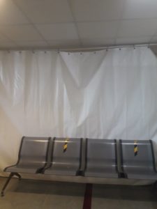 Όπως βλέπετε στις φωτογραφίες η μονάδα covid κρύβεται πίσω από μεταλλικές καρέκλες και παραβάν….που θυμίζουν εκλογικό κέντρο…Ακριβώς μπροστά βρίσκονται τα επείγοντα περιστατικά όπου είναι τοποθετημένα τα κρεβάτια των εξεταστηρίων.