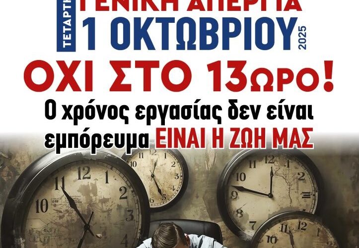 Γενική απεργία σήμερα, Τετάρτη 1η Οκτωβρίου, με τα συνδικάτα να αντιδρούν στην εισοδηματική και εργασιακή πολιτική της κυβέρνησης, διεκδικώντας μείωση του χρόνου εργασίας, ουσιαστική αύξηση μισθών και αντιμετώπιση της ακρίβειας και της στεγαστικής κρίσης.