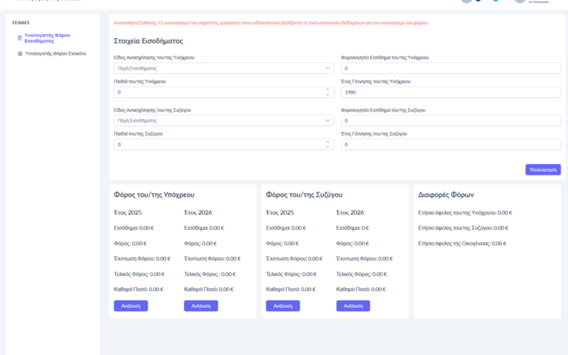 Υπολογίστε πόσο φόρο θα πληρώσετε στα εισοδήματα του 2026 – Οδηγός για την νέα εφαρμογή